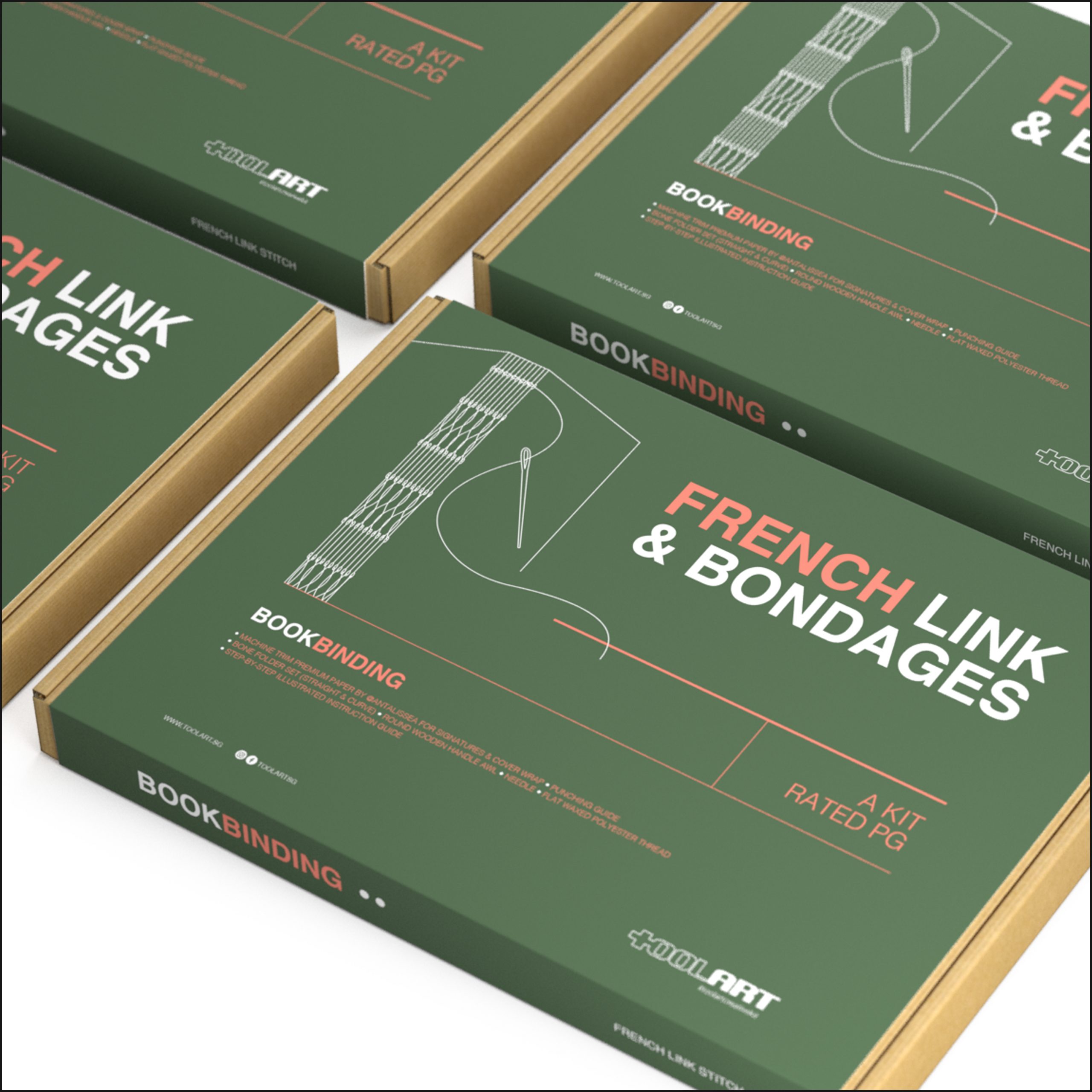 Everything you need in one kit to learn FRENCH LINK stitch binding, book cover construction, and signature preparation. Fall in love with bookbinding and start your journey to making your own journaling books with custom paper stock for sketching, watercolour painting, or calligraphy.