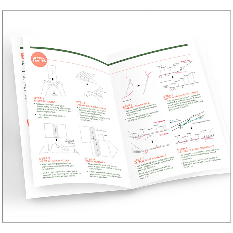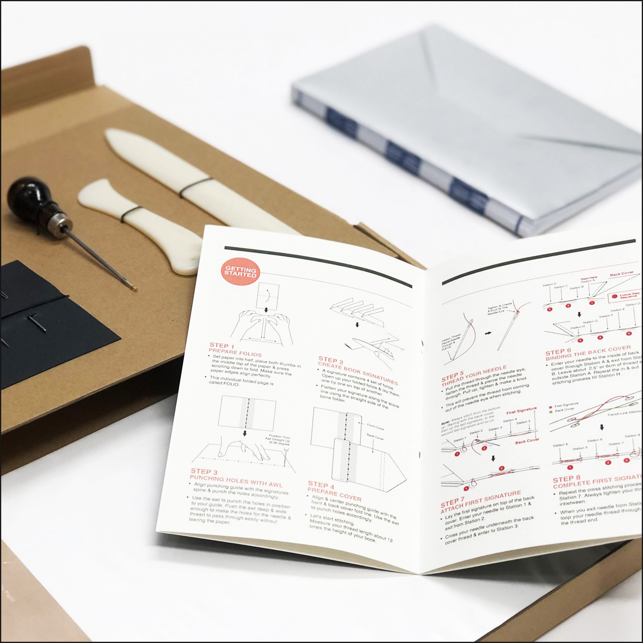 Enclosed in the kit are premium quality papers hand-selected from @ANTALISSEA. Each kit is specially curated to include all the material and essential tools from 2 bone folder paper creasers (straight & curve) to fold, crease, score or burnish. Taper shape wood handle awl and quality waxed thread prevent tangle while stitching. Learn to stitch along with a step-by-step graphic illustrated instruction guide.